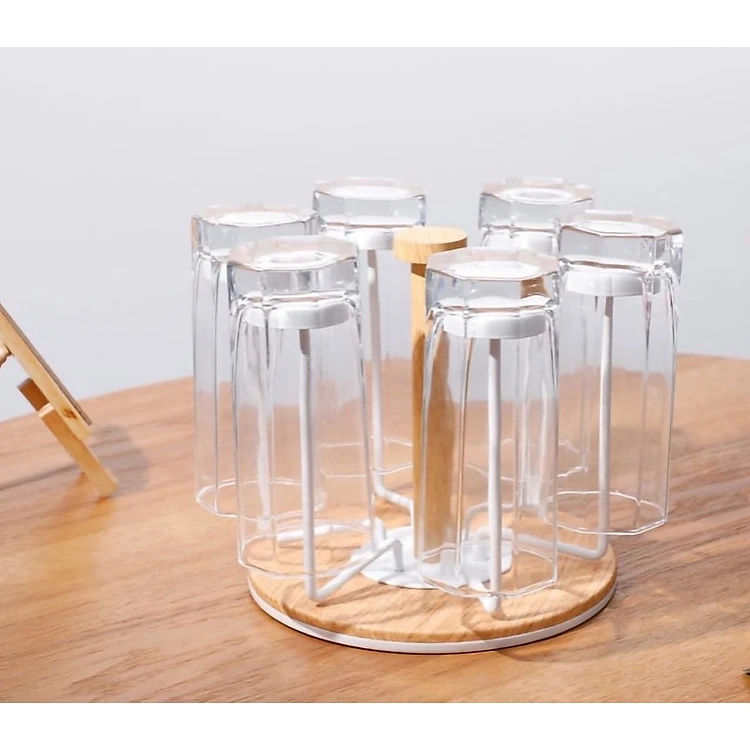 Giá úp cốc gỗ quay 360 độ