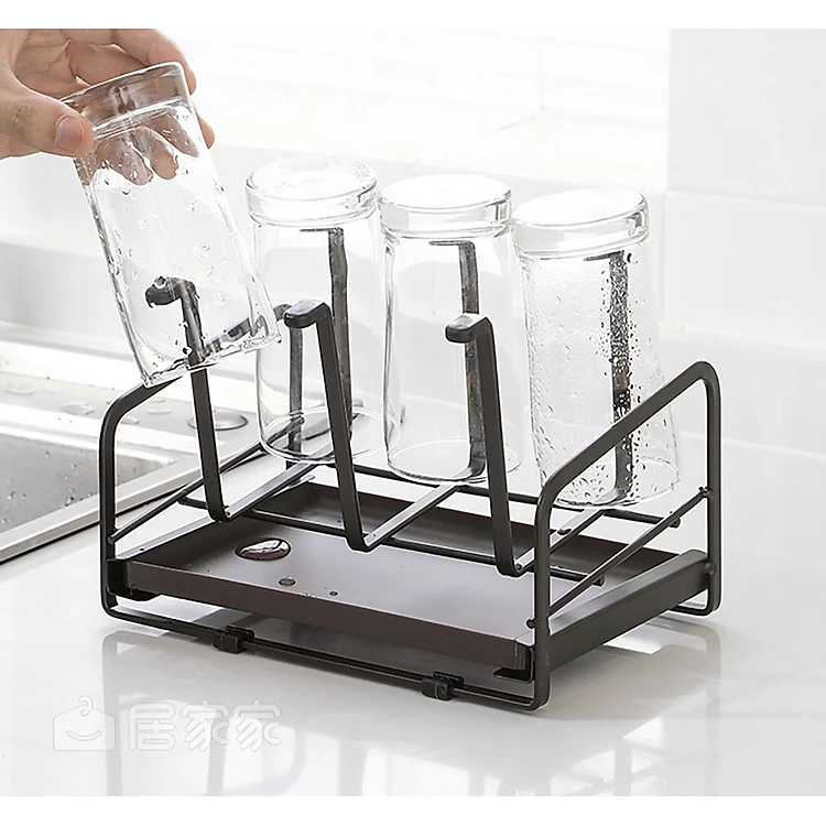Giá úp cốc hình chữ nhật kèm khay hứng nước sơn tĩnh điện đen chống rỉ - VD94