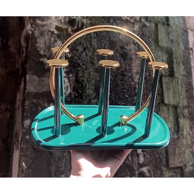 GIÁ ÚP LY CỐC CHỮ NHẬT MÀU XANH CỔ VỊT TAY CẦM BÁN NGUYỆT MẠ VÀNG