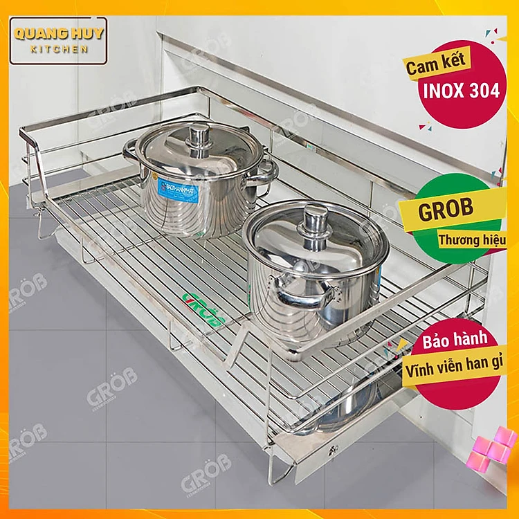 Giá xoong nồi inox 304 nan dẹt cho tủ bếp bảo hành vĩnh viễn han gỉ