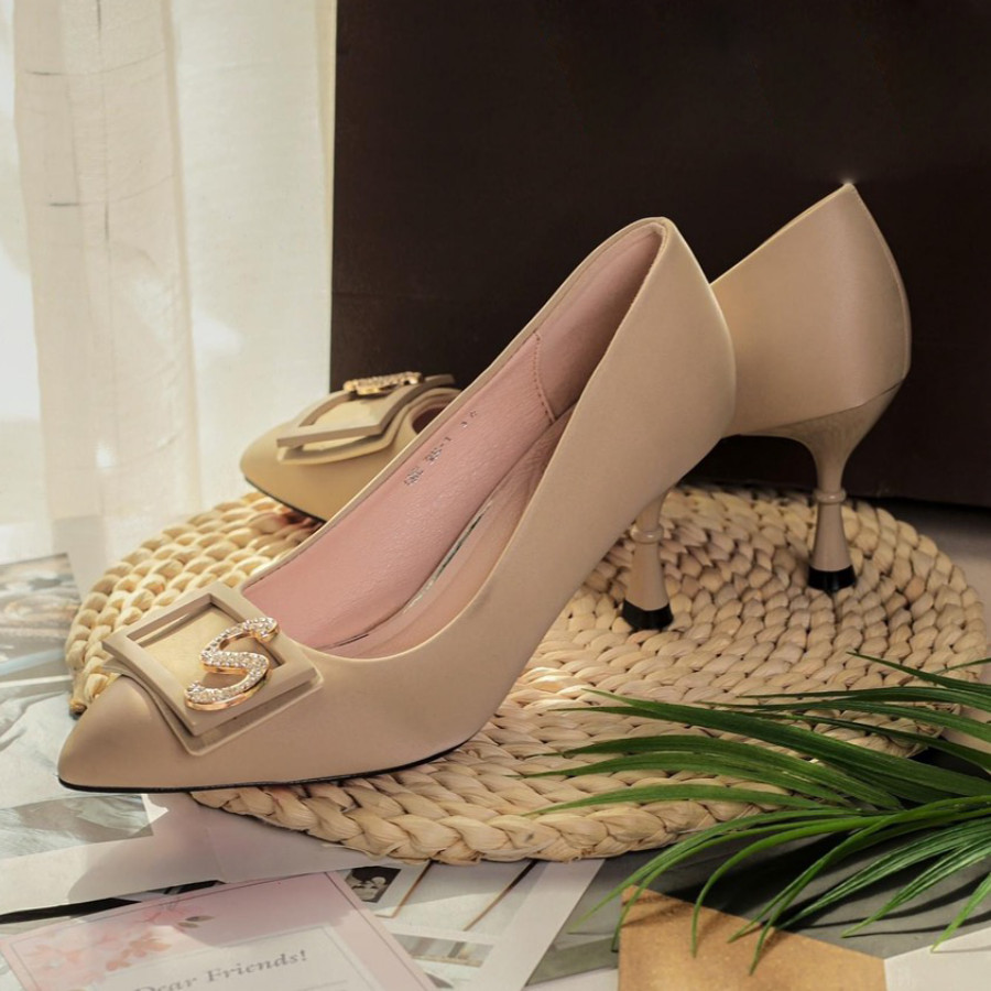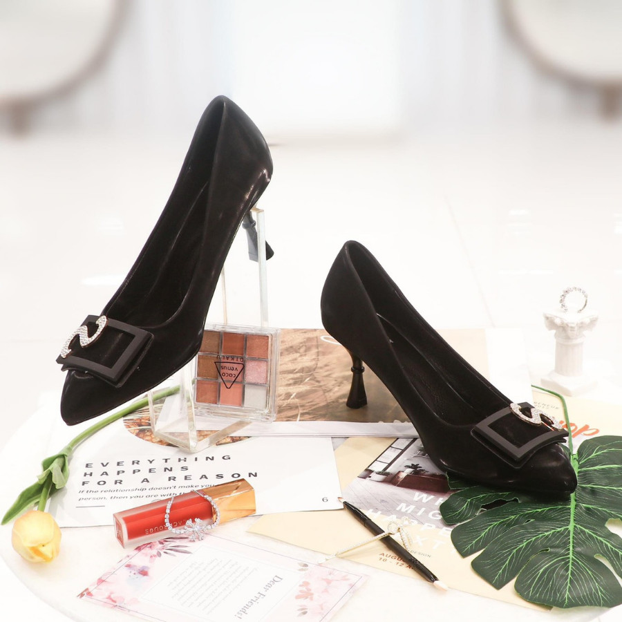 GIÀY CAO GÓT 7P HT.NEO KHUY VUÔNG CHỮ S ĐÍNH ĐÁ CS150
