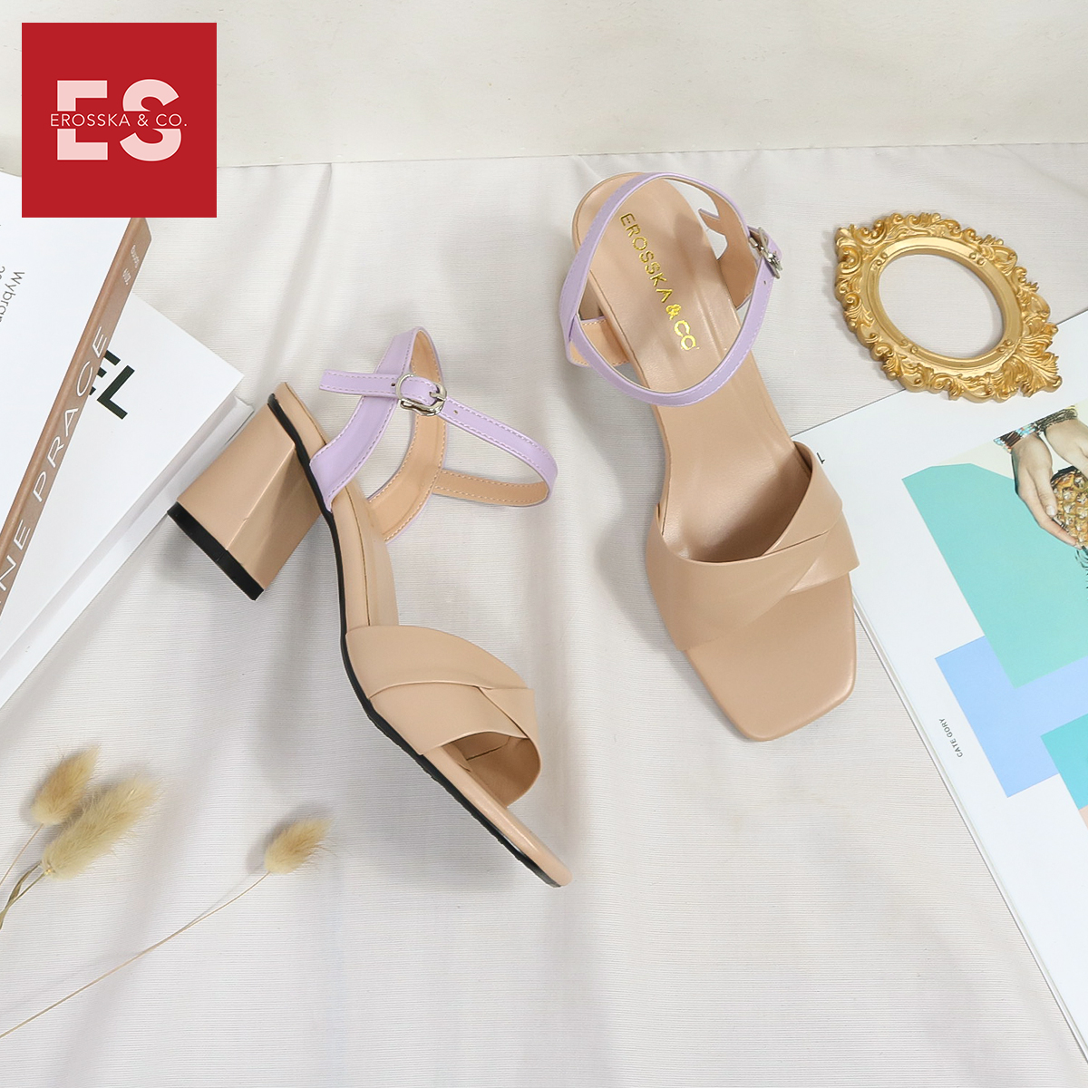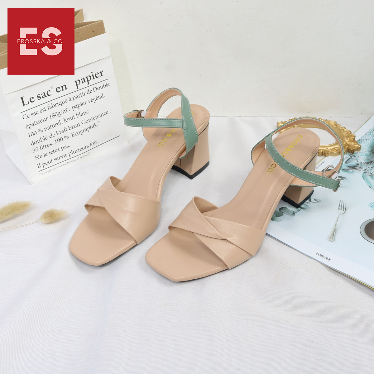 Tên sản phẩm: Giày sandal cao gót Erosska thời trang mũi vuông quai ngang bắt chéo cao 7cm EB020