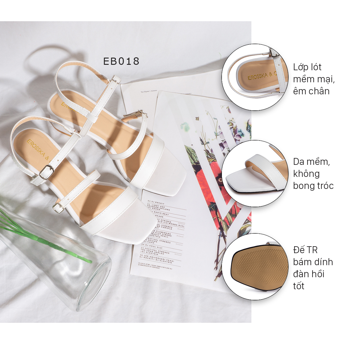 Tên sản phẩm: Giày sandal cao gót Erosska thời trang mũi vuông phối dây quai mảnh cao 3cm EB018