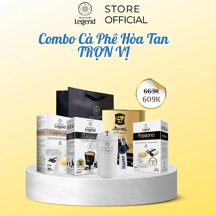 [GIẢM 54K] Combo Cà Phê Hòa Tan Trọn Vị 609K - Trung Nguyên E-Coffee