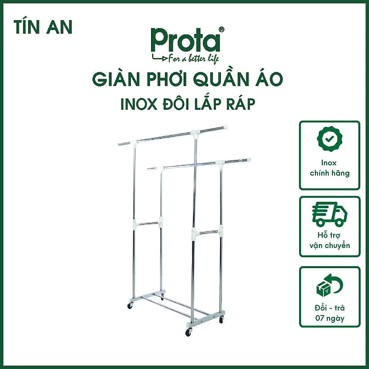 Giàn Phơi Quần Áo Inox Đôi Di Động Cao Cấp Prota - 170 x 165cm
