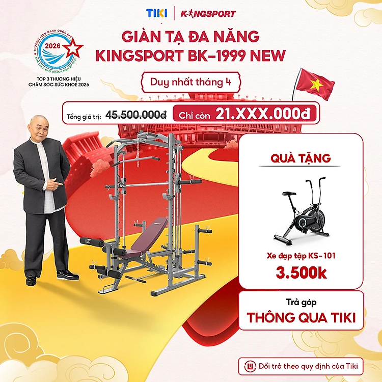 [Miễn phí lắp đặt] Giàn tạ đa năng KINGSPORT BK-1999 New, khung sườn chắc chắn, 15 bài tập chuyên nghiệp