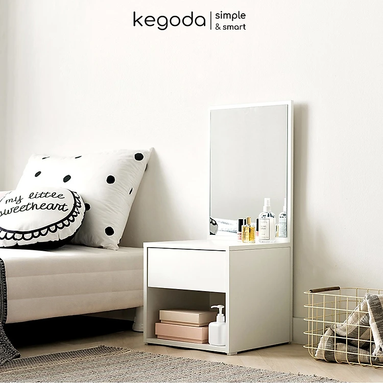 Bàn Trang Điểm Ngồi Bệt Nhỏ Gọn, Bàn Gỗ Makeup Mini Kết Hợp Kệ Đầu Giường Đơn Giản KEGODA KGD11