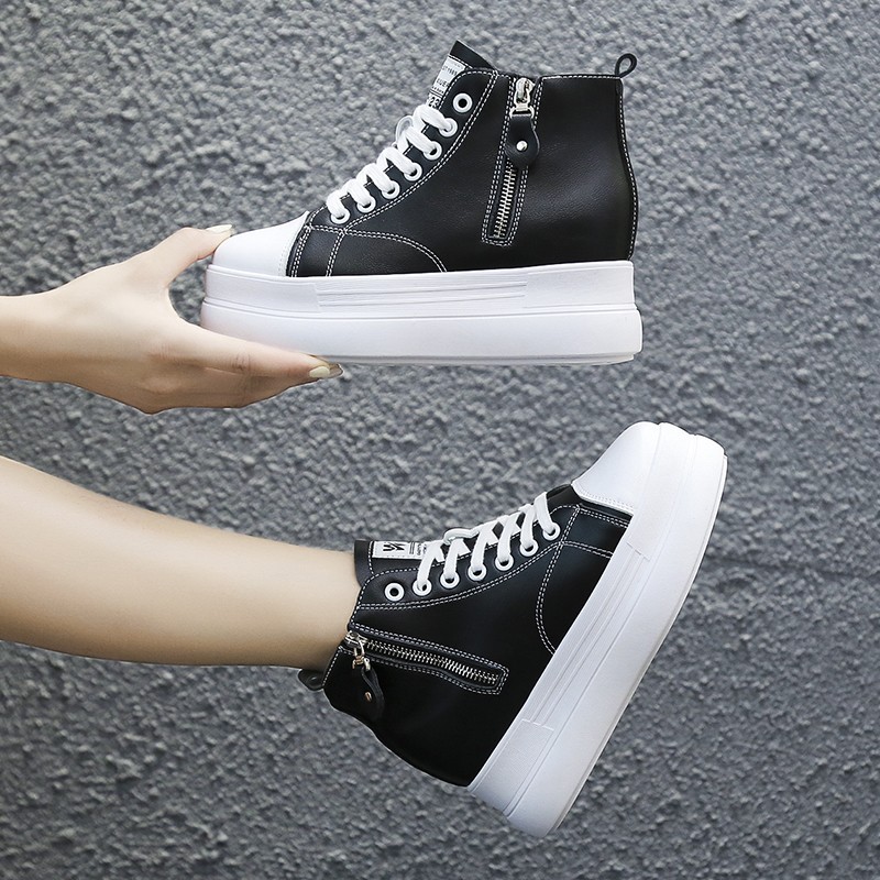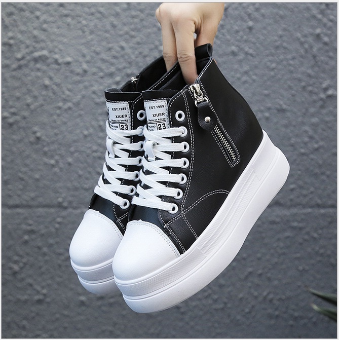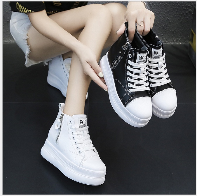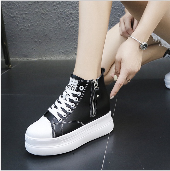 Giày bánh mì đế độn cá tính cao 7cm chất da mềm mại full size màu đen, trắng BM084