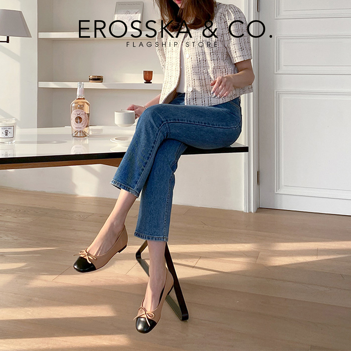 Tên sản phẩm: Giày bệt đế bằng thời trang Erosska kiểu dáng Hàn Quốc đế cao su da mềm đính nơ ef011