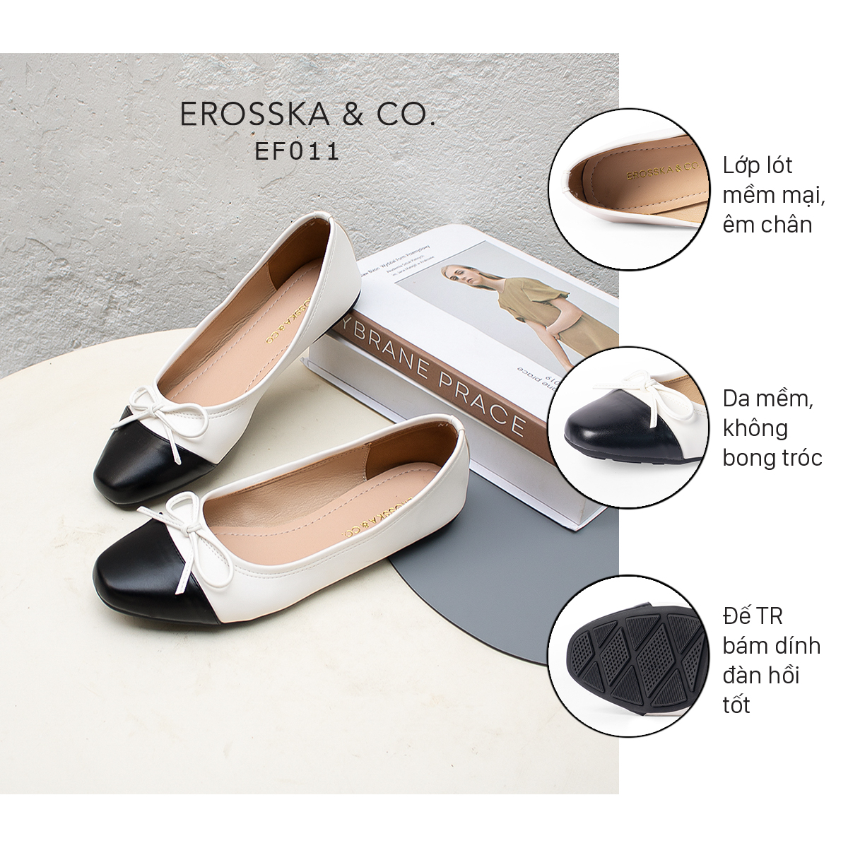 Vẻ đẹp quyến rũ vừa mang nét cá tính, vừa uyển chuyển dịu dàng của những đôi giày búp bê có một sức hút không thể cưỡng lại đối với phái đẹp. Nó đem lại cho phụ nữ cảm giác tự tin,thoát ly bay bổng, nhẹ nhàng. Giày bệt đế bằng thời trang Erosska kiểu dáng Hàn Quốc đế cao su da mềm đính nơ ef011 với thiết kế trẻ trung, đường nét mềm mại, tinh tế sẽ mang đến cho bạn vẻ đẹp hoàn hảo với cảm giác nhẹ nhàng trong từng bước chân.