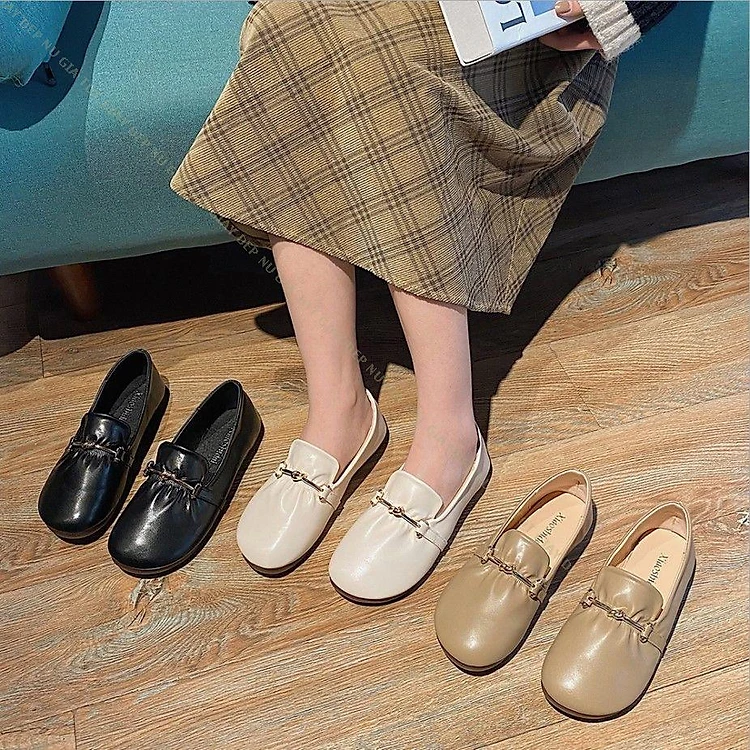 Giày bệt nữ Hài bệt nữ da mềm siêu dẻo đi êm chân Khóa ngang sang chảnh G24