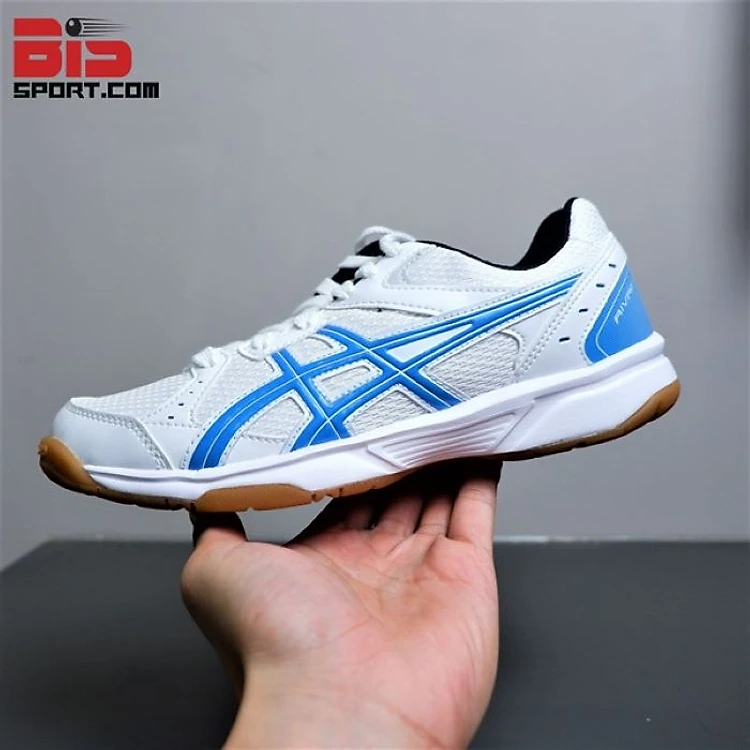 Giày Bóng Bàn Cầu Lông Asics Rivre CS Chính Hãng - Trắng Xanh - Chống Lật, Bám Sân, Thoáng Khí, Bền Bỉ