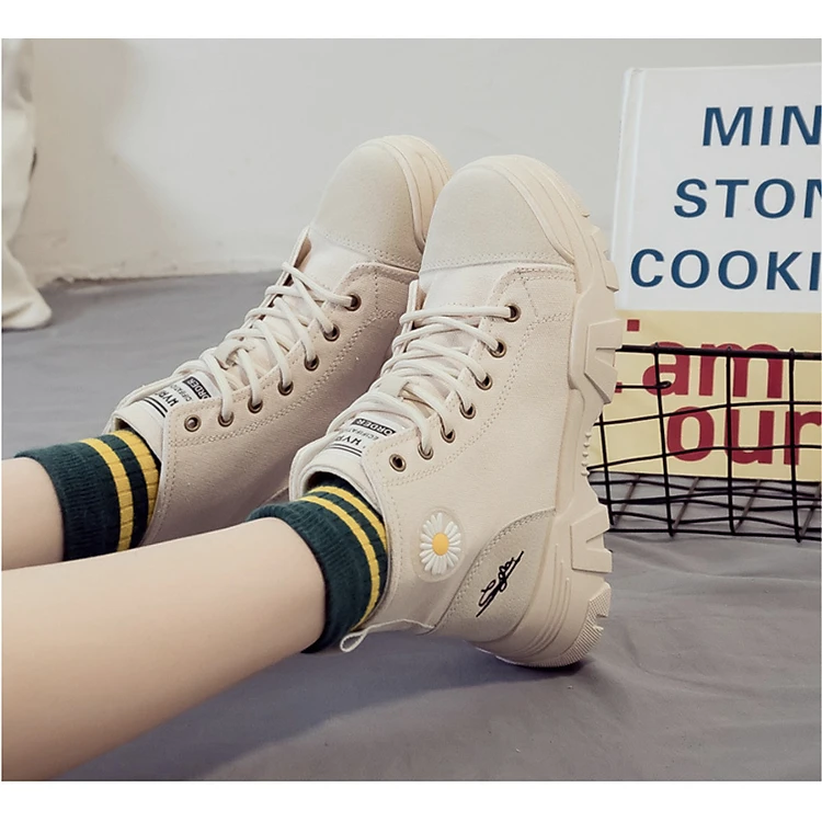 Giày boot nữ hoa cúc cá tính 2 màu trắng kem, nâu B150