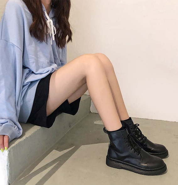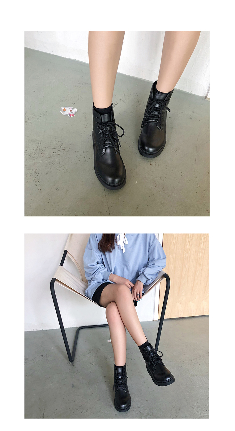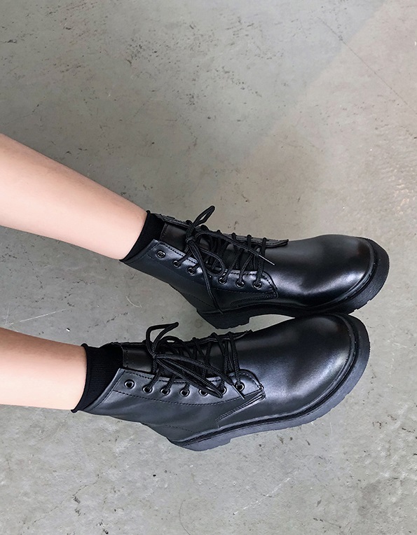 Mũi giày tròn, đế cao 3cm, cổ cao trên mắt cá