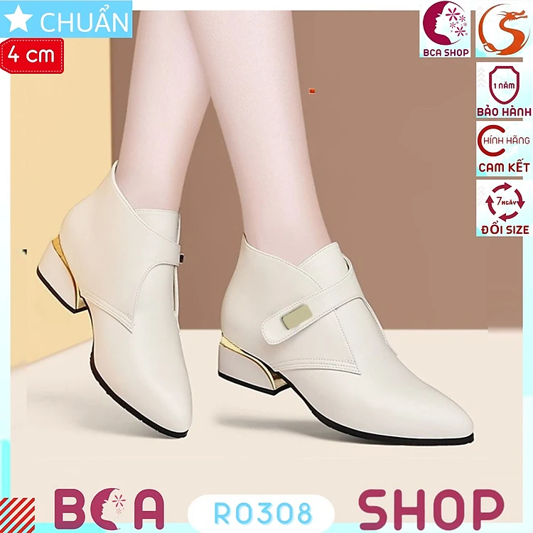 Giày bốt nữ cổ ngắn màu trắng kem 4p RO308 ROSATA tại BCASHOP khóa nút tiện lợi, mùi nhọn sang trọng thể hiện đẳng cấp