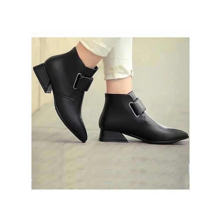 Giày bốt nữ mũi nhọn da trơn đế vuông cao 3cm mã C10