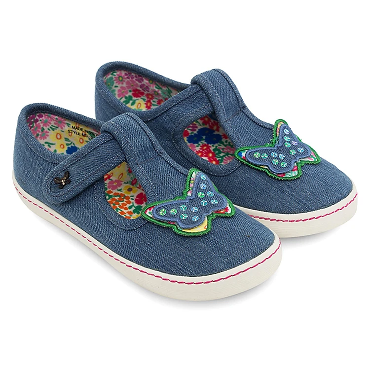 Giày Búp Bê Bé Gái In Hình Bướm D&A BG1516 – Xanh Jean Nhạt thiết kế form giày ôm vừa vặn, thoải mái. Giày có tông màu xanh jean nhạt nhẹ nhàng, năng động. Thiết kế quai cài ngang cố định chân chắc chắn hơn, không lo tuột rớt. Giày rất bền và êm chân khi đi nhờ may từ chất liệu vải cao cấp. Bề mặt giày in hình bướm thật sinh động, đáng yêu.