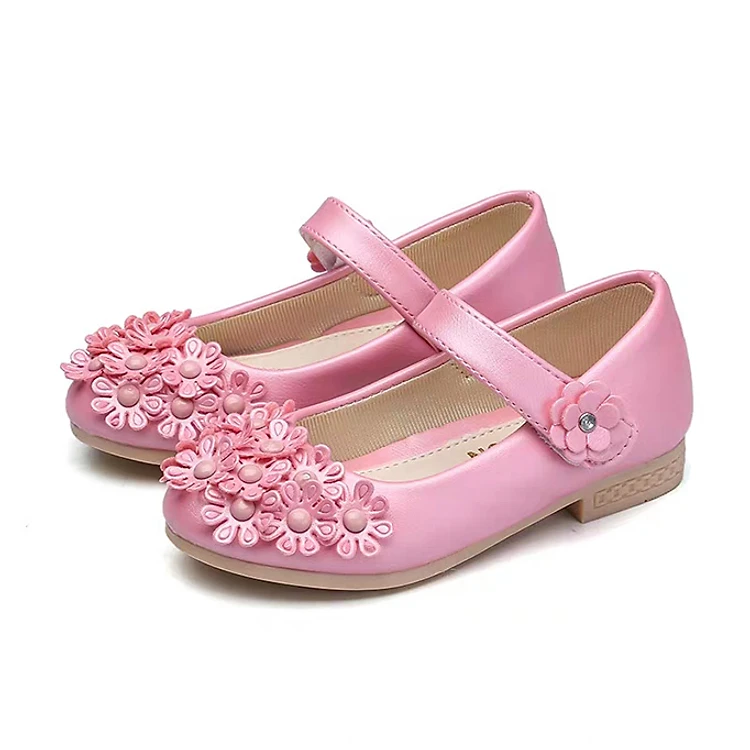 Hoạ tiết: Giày đính hoa xinh xắn, nữ tính, thích hợp cho bé phối với đầm công chúa