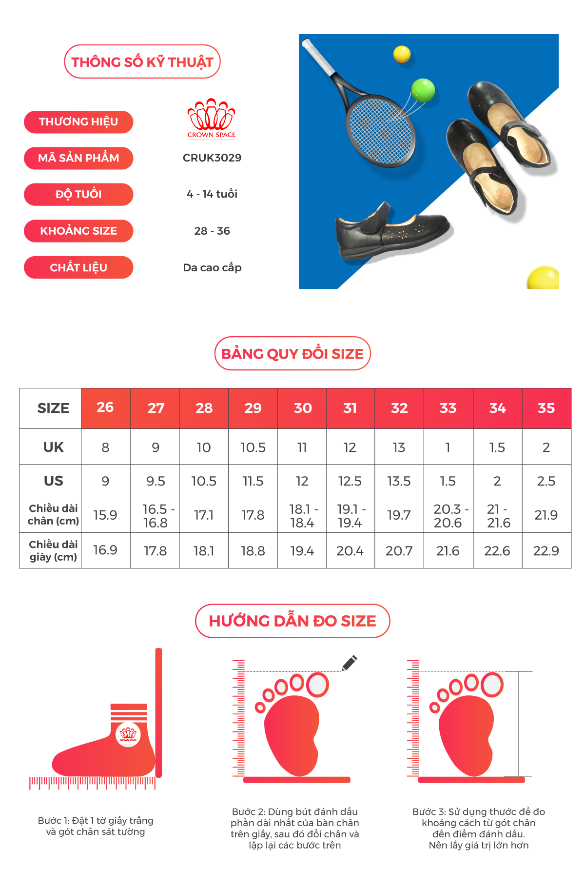 - [TIÊU CHUẨN]: Crown Space trở thành hệ thống cửa hàng “Multi-Brands Store” chuyên thời trang trẻ em tại nhiều quốc gia, đặc biệt tại khu vực Châu Á. Nhà phân phối tự tự hào là một trong số ít thương hiệu giày dép tại Việt Nam đặt yếu tố An toàn sức khỏe lên hàng đầu.