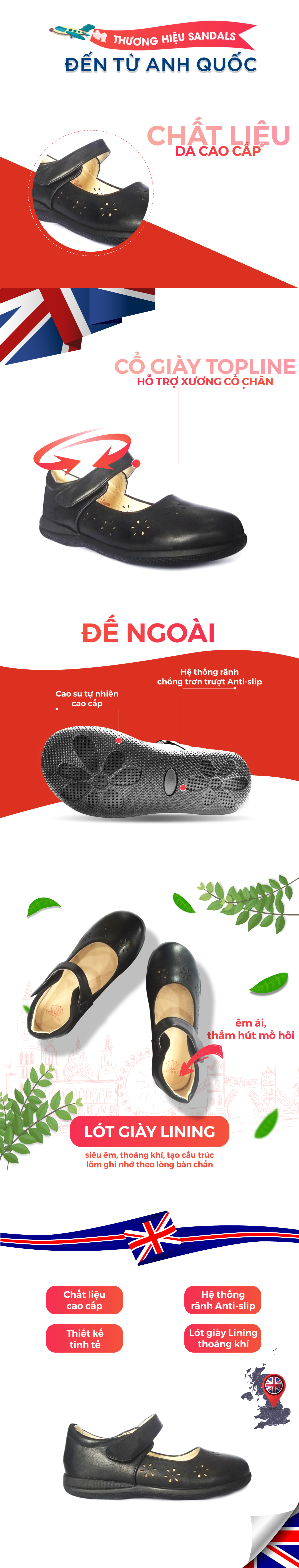 - [ĐẾ GIÀY]: Từng đường may vô cùng tỉ mỉ và chính xác cho trải nghiệm sản phẩm luôn tuyệt hảo. Đế từ chất liệu cao su nguyên chất, nhiều lỗ thoáng khí, chống trơn trượt, giúp bé thỏa sức vận động trên mọi địa hình.