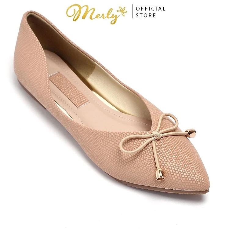 Giày búp bê nơ mũi nhọn Merly 1390, Giày bệt nữ mũi nhọn, Giày nữ size lớn, Giày bệt nữ big size