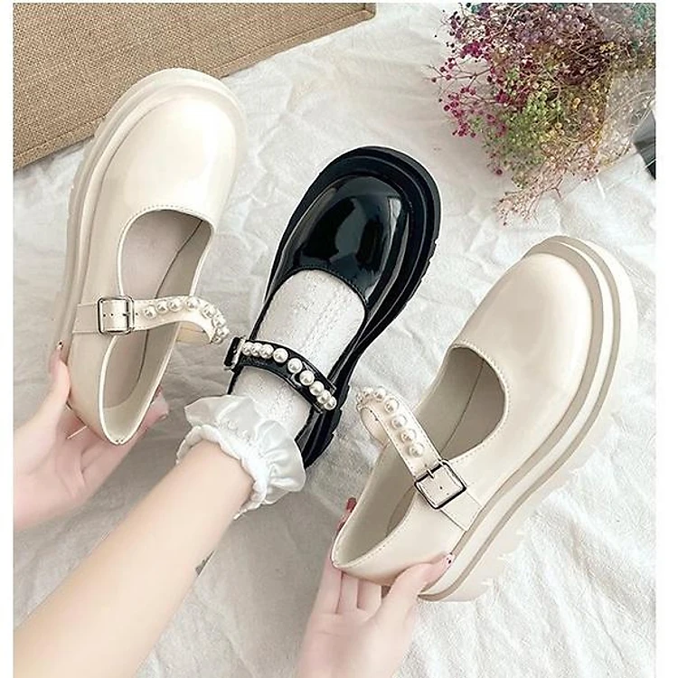 Giày búp bê nữ Lolita đính ngọc cao cấp đế 5 phân, 3 phân ôm chân phong cách Hàn Quốc