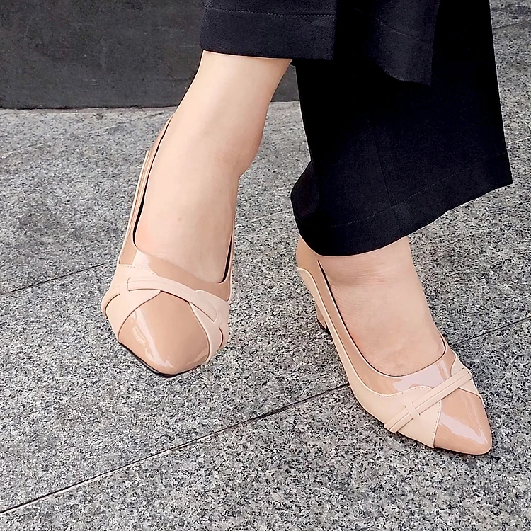 Giày cao gót 7cm da bóng Trường Hải nâu phối kem thời trang công sở CG125NK