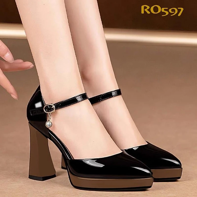 Giày cao gót da bóng phối màu ROSATA RO597 cao 8p - Nâu, Đỏ - HÀNG VIỆT NAM - BKSTORE