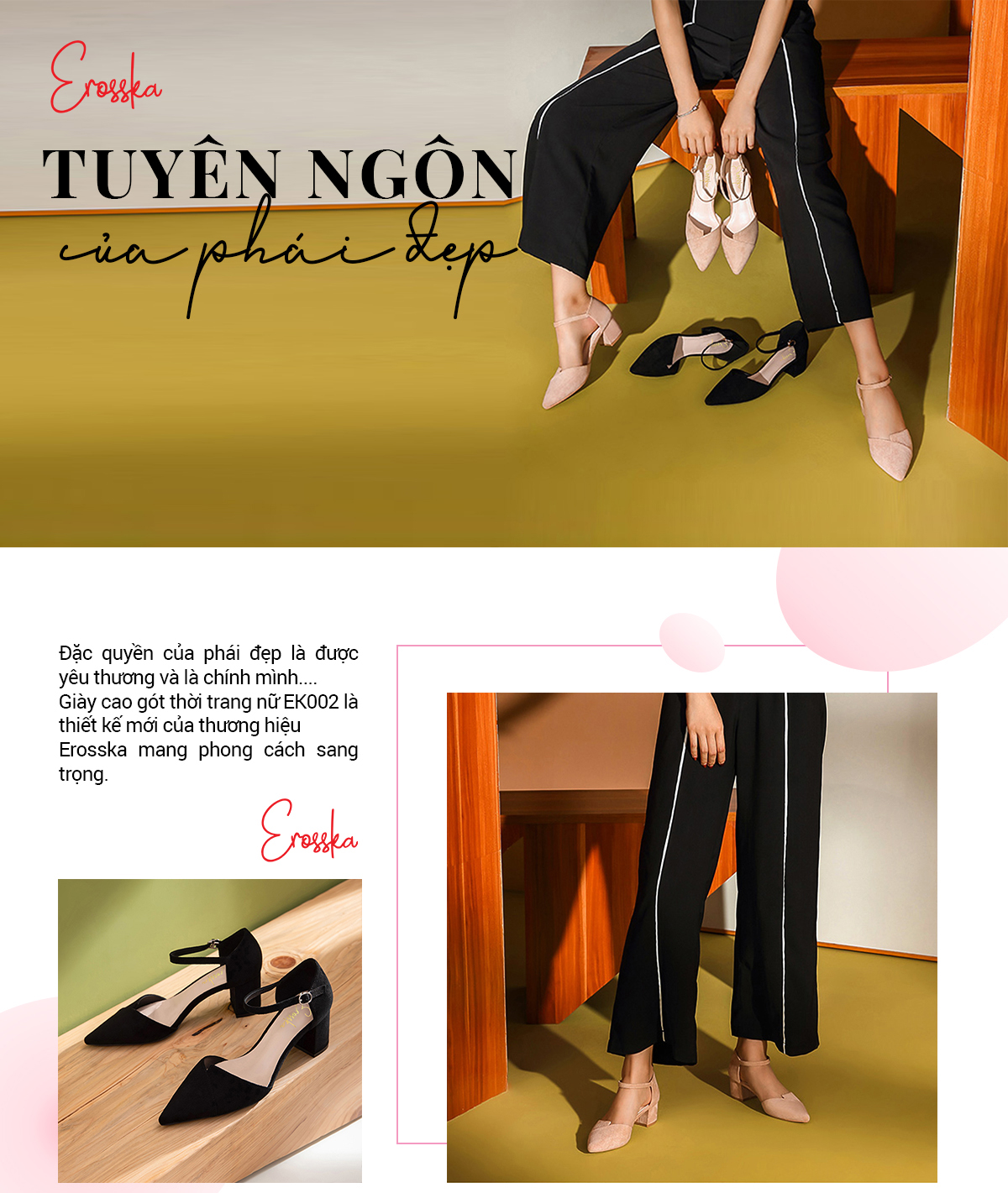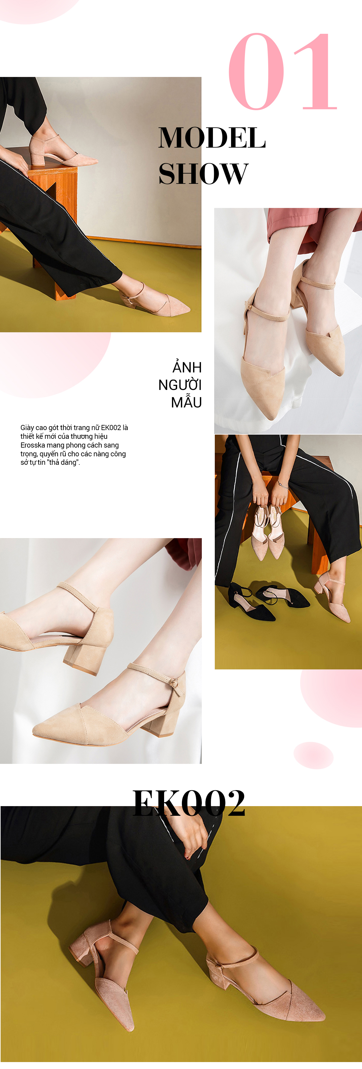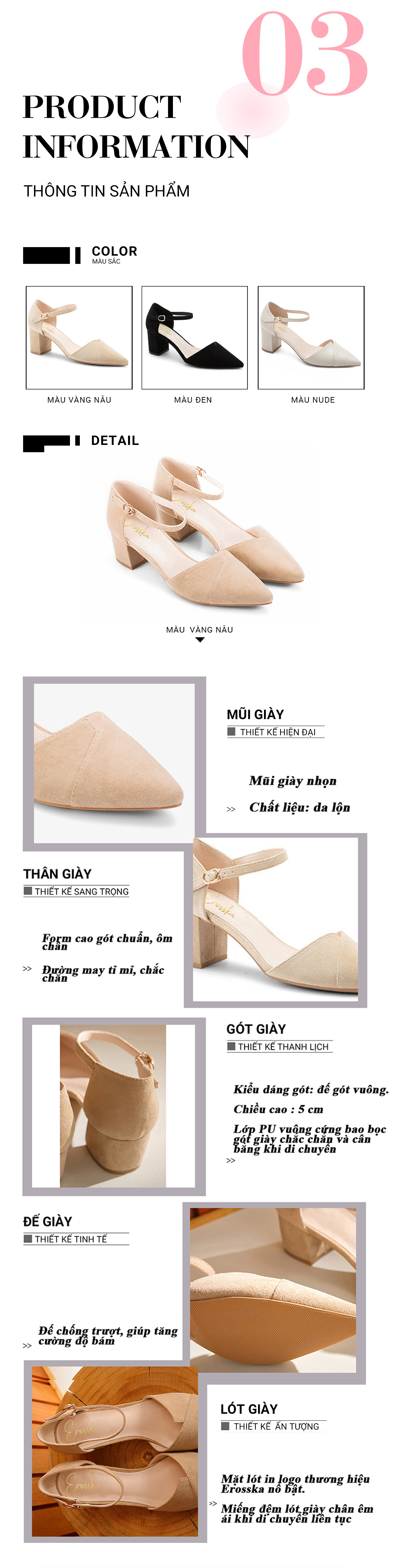 Tên sản phẩm: Giày Nữ, Giày Cao Gót Erosska Cao 5 cm Mũi Vuông Thời Trang Thiết Kế Sang Trọng EK002