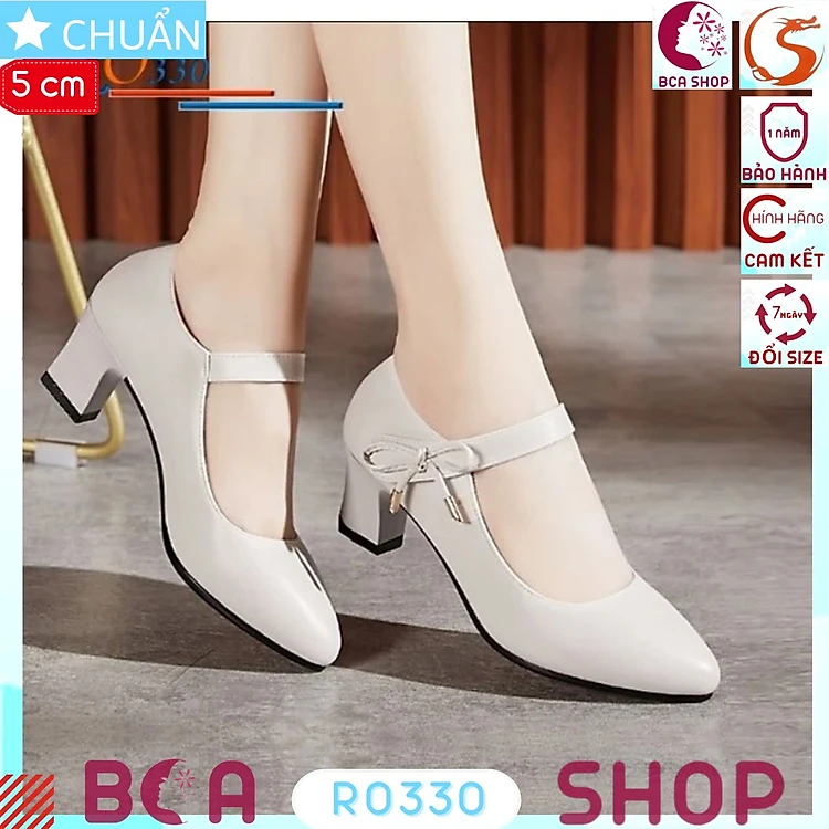 Giày cao gót nữ 5p RO330 ROSATA tại BCASHOP màu kem, mũi tròn, quai keo gai và có đính nơ nhã nhặn, thanh lịch