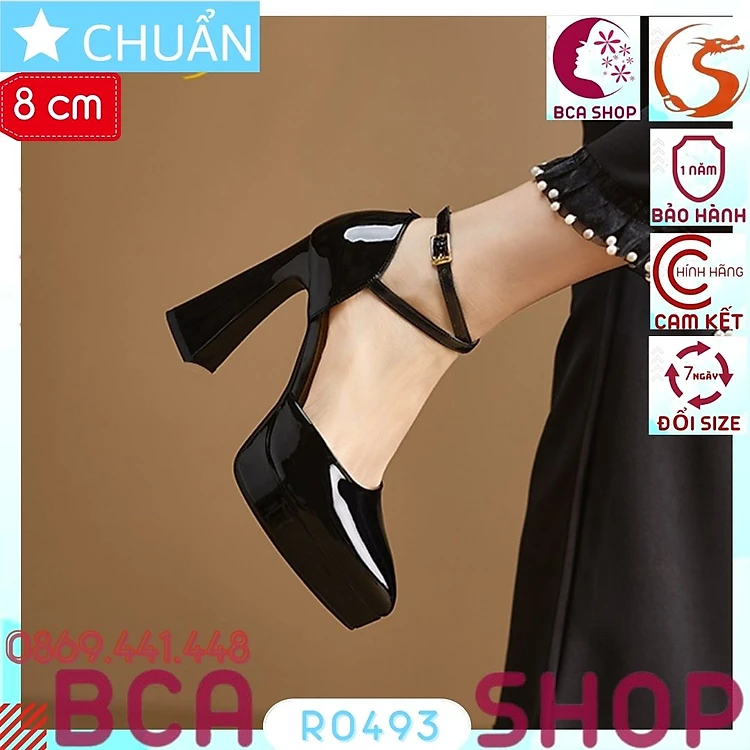 Giày cao gót nữ 8p RO493 ROSATA bít mũi có quai cài ôm cổ chân kiểu dáng thanh lịch và sang trọng - màu đen