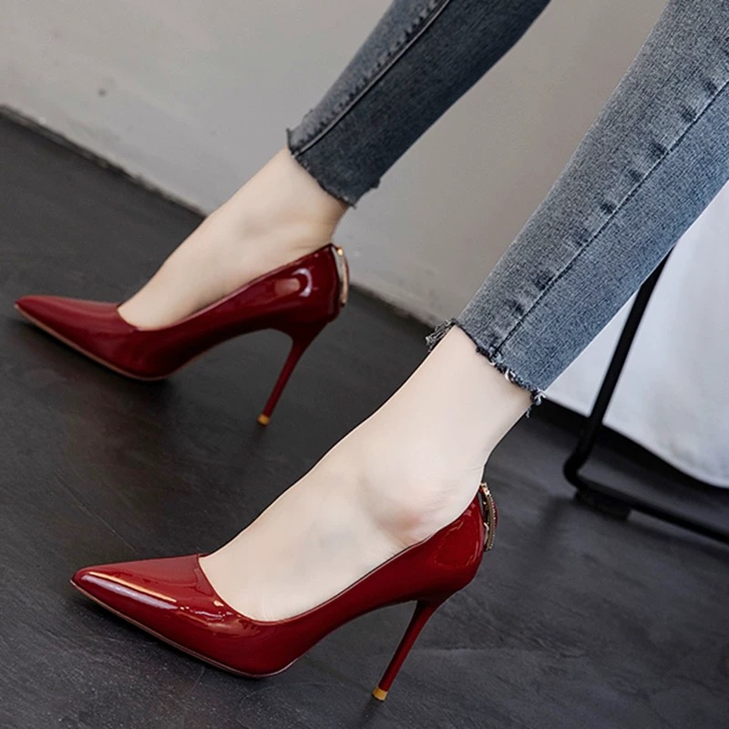 Giày Cao Gót Nữ 9P Da Bóng Gót Nhọn