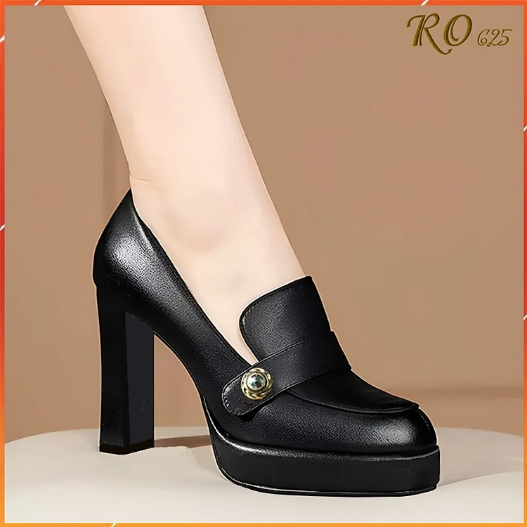 Giày cao gót nữ đẹp đế vuông 9 phân hàng hiệu rosata hai màu đen trắng cao cấp ro625