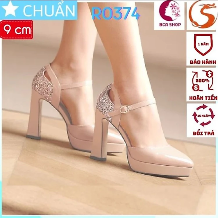 Giày cao gót nữ màu nude da 9p RO374 ROSATA tại BCASHOP đế đúp, quai sau, gót sau được phối kim tuyến sang trọng cực kì