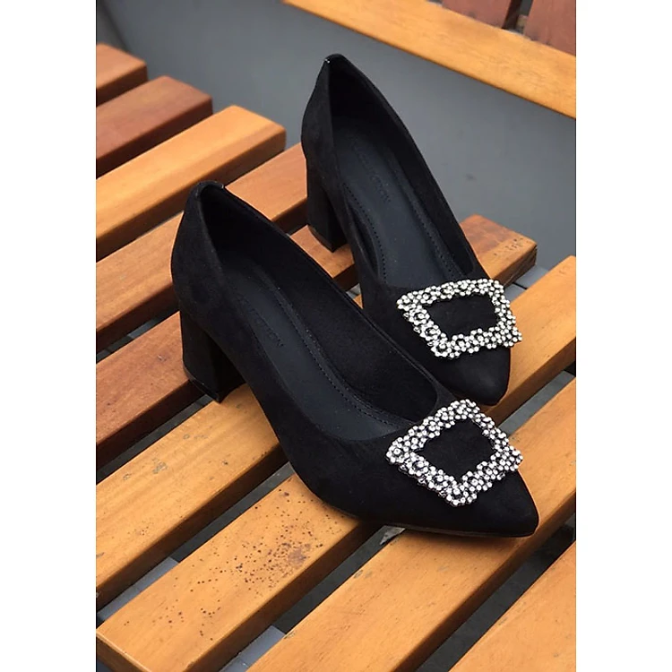 Giày Cao Gót Vuông 5cm Đính Đá Hadu G529