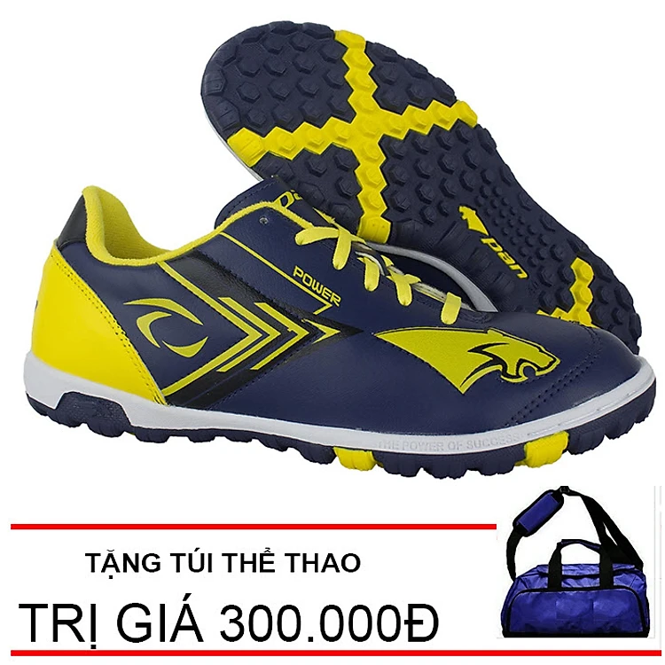 Giày Đá Bóng Nam PAN Power TF PF14X2-DY – Xanh Navy Phối Vàng là giày thể thao cao cấp dành cho cầu thủ sân cỏ. Giày Pan Power TF có phần đế được thiết kế theo chuẩn sân cỏ nhân tạo Việt Nam. Bên cạnh đó, chất liệu cao su cao cấp giúp tăng độ dẻo dai cho đế giày để các động tác chân của bạn được linh hoạt nhất. Form giày chuẩn ôm sát chân tạo cảm giác bóng tốt, làm tăng khả năng xử lý bóng, đồng thời giúp cho việc kiểm soát bóng của bạn trở nên dễ dàng hơn. Họa tiết hình mũi tên ấn tượng, thể hiện những đường bóng, hay cách di chuyển tốc độ, cho các cầu thủ thật nhiều cảm hứng trên sân cỏ.