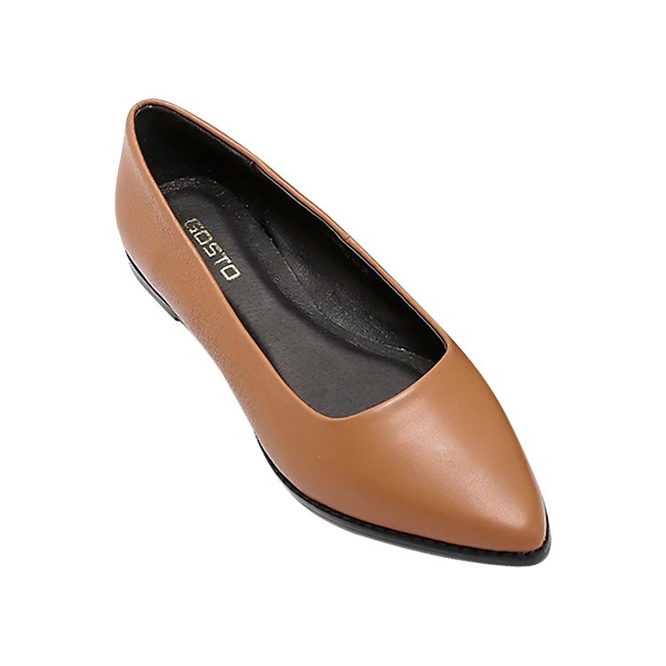 - Giày Da Thật Đế Bằng Gosto Innocence Beware GS0000317BRO (Nâu) sở hữu thiết kế giày mũi nhọn, đế bệt đơn giản mang đến vẻ ngoài thanh tú và sang trọng cho phái đẹp.