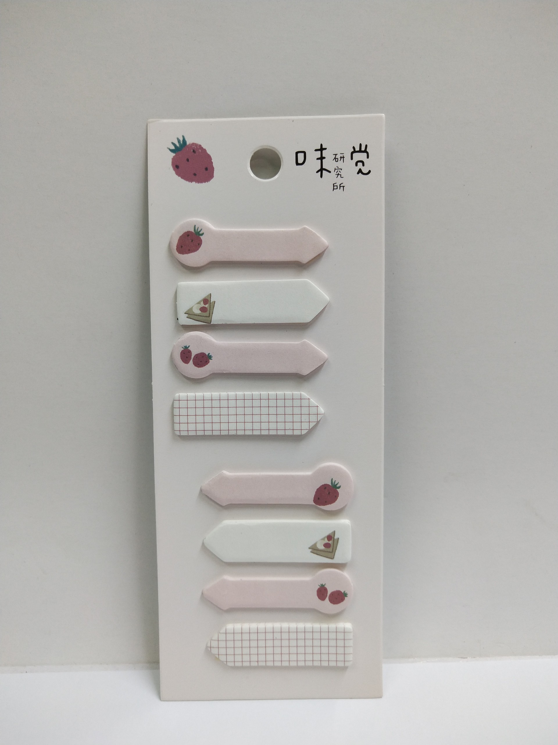 • Giấy Đánh Dấu Trang Food giúp người sử dụng dễ dàng đánh dấu trang, ghi chú, nhắc nhớ trong học tập và công việc. Độ phủ keo dày, dán dính lâu trên đa số các bề mặt. Giấy note gồm 8 xấp, bản nhỏ, vô cùng tiện dụng.