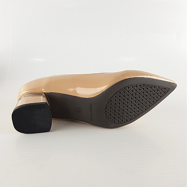 Da bóng, gót thiết kế 3cm mica phủ màu bên trong gót và si vàng đồng. Lớp da được xử lý kỹ càng, vừa giúp tăng tính thẩm mỹ, vừa chống trầy xước hiệu quả.