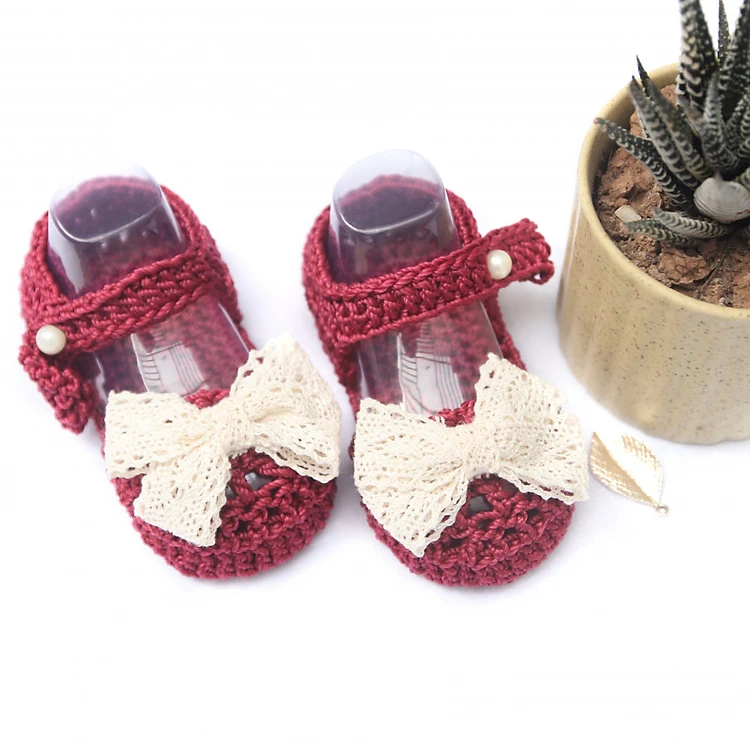 Với kiểu dáng gắn nơ ren điệu đà và cúc ngọc cùng tông, xăng đan đỏ đô nơ ren dễ dàng kết hợp đồ cho bé