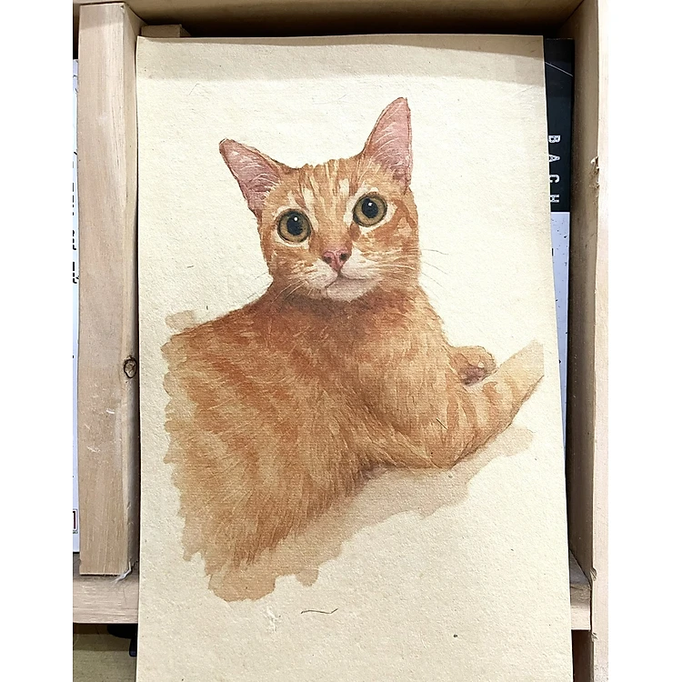 Thần thái của Mèo - Bộ tranh Mèo trên giấy dó - Tranh giấy dó - Bưu thiếp giấy dó