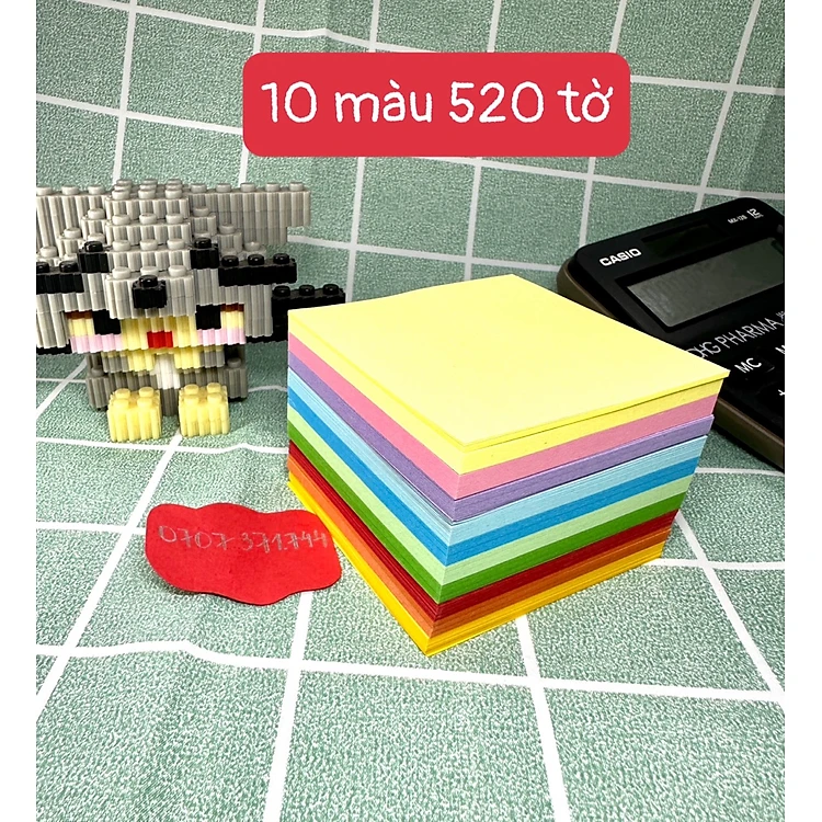 Giấy Gấp Hạc 520 Tờ Gồm 10 Màu Khác Nhau Kích Thước 7cm và 10cm Có Thể Dùng Làm Giấy Note Không Keo