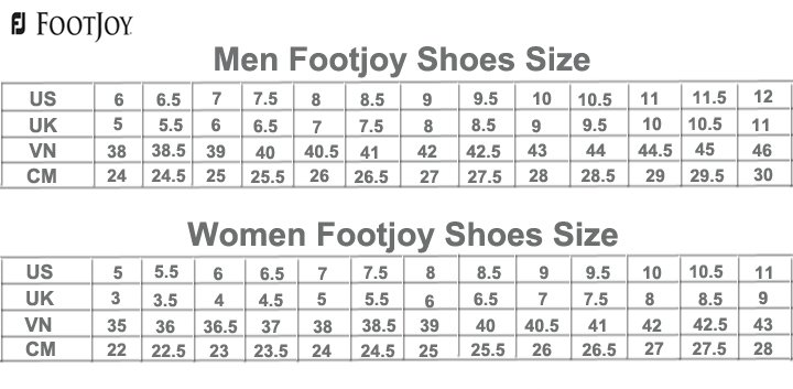Bảng size tham khảo : (nếu khách đã đang đi giầy Footjoy xin lưu ý khi mua nên mua theo size đã mua từ trước theo size US trong lưỡi giầy)