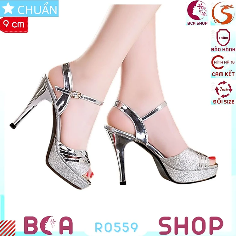 Giày sandal cao gót nữ 9p RO559 màu bạc ROSATA tại BCASHOP gót nhọn, quai ngang bóng nhám sang trọng