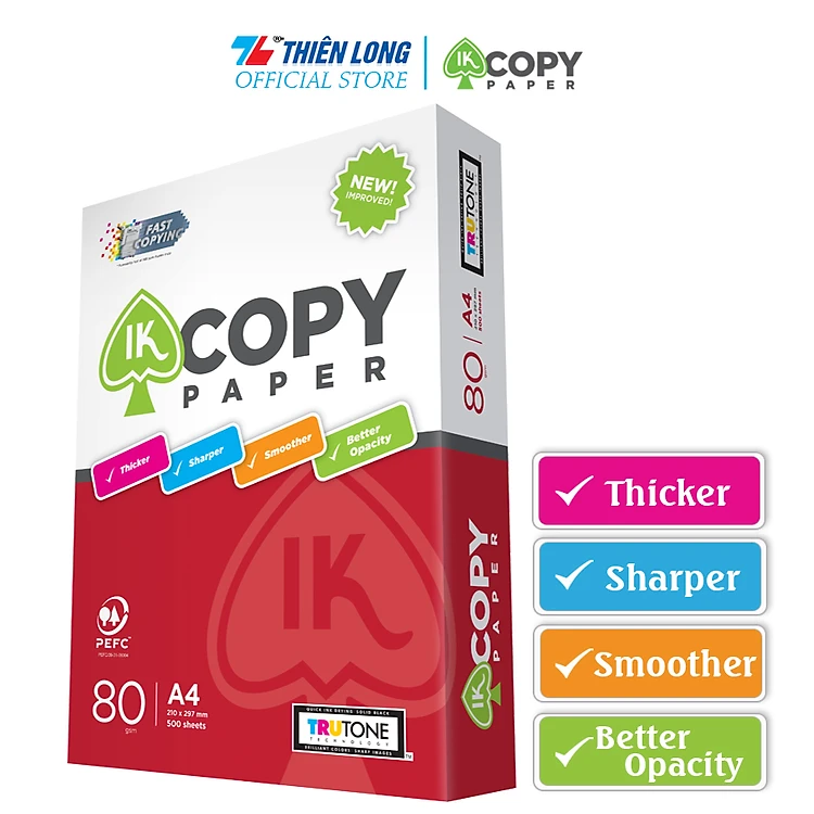 Giấy in photo A4 IK Copy IK-01- Định lượng 70 gsm - 80 gsm - 500 tờ/ream- chất lượng cao
