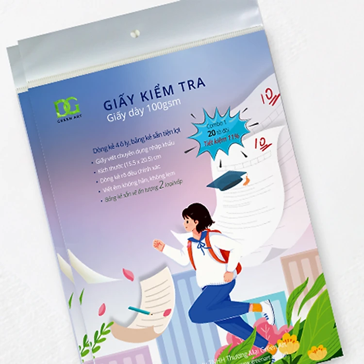 Giấy kiểm tra dòng 4 ô ly giấy trắng dày, viết êm không lem, bảng kẻ sẵn tiện lợi, Combo 1: 20 tờ GKTL1-12 Green Art - Hàng chính hãng