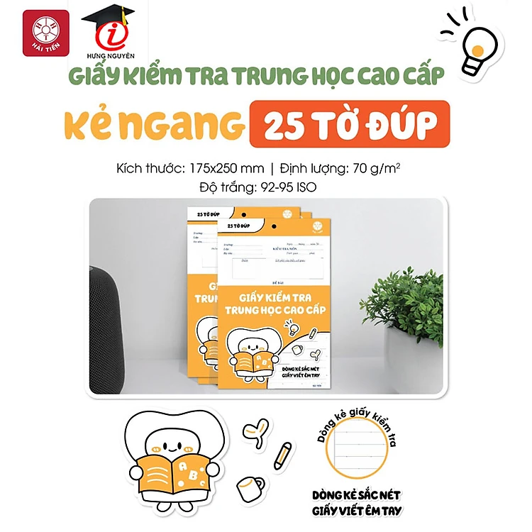 Giấy kiểm tra dòng kẻ ngang Hải Tiến 2029 dùng cho học sinh cấp 2, 3 (25 tờ đúp)