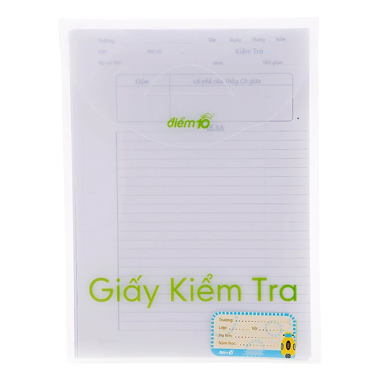 - Quyển tập có đường kẻ ô ly rõ ràng, đều đặn giúp các em học sinh viết chữ đẹp hơn, nắn nót hơn. Tập kiểm tra giúp cho các em học sinh sử dụng để làm bài kiểm tra, các thông tin cần thiết được in rõ ràng như: trường, lớp, họ và tên, môn, thời được in rõ ràng, trình bày khoa học.