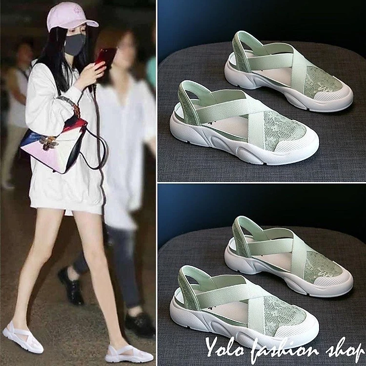 Giày lười slip on nữ độn đế 3cm phối ren vintage thời trang