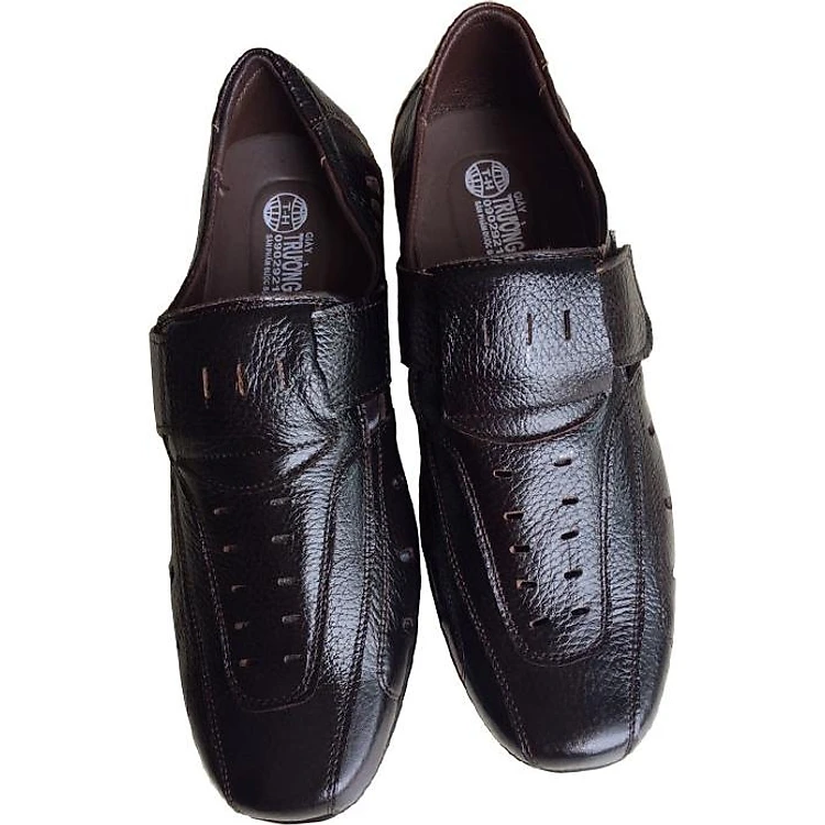 Giày mọi nam mùa hè Trường Hải da bò thật cao cấp màu đen đế không trơn, may chắc chắn GR07